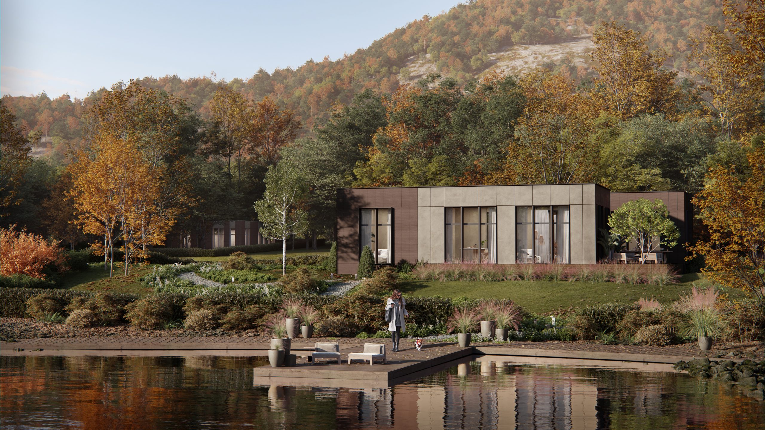 The project includes two primary design approaches: a pitched-roof typology that reflects traditional rural form, and a more modern, cubic configuration. In both models, the spatial flow, outdoor integration, and landscape-oriented layouts remain central. Whether nestled by a serene lake or placed within a lush garden, HAB delivers an inviting and human-scale architectural experience.